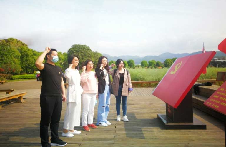 走過(guò)會(huì)議舊址,支部黨員在中國(guó)共產(chǎn)黨黨旗前重溫入黨誓詞,不忘初心,牢記使命。