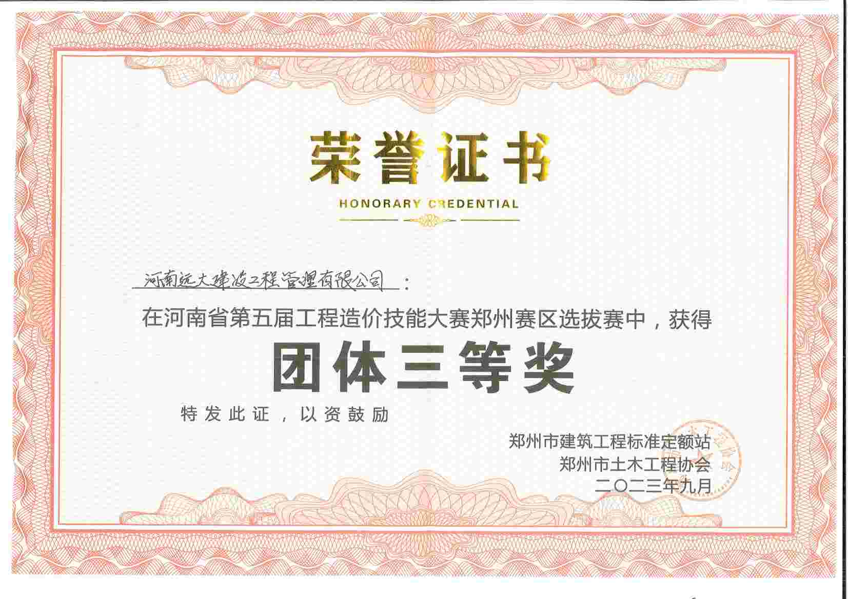 河南省第五屆工程造價(jià)技能大賽鄭州賽區(qū)選拔賽團(tuán)體三等獎(jiǎng)