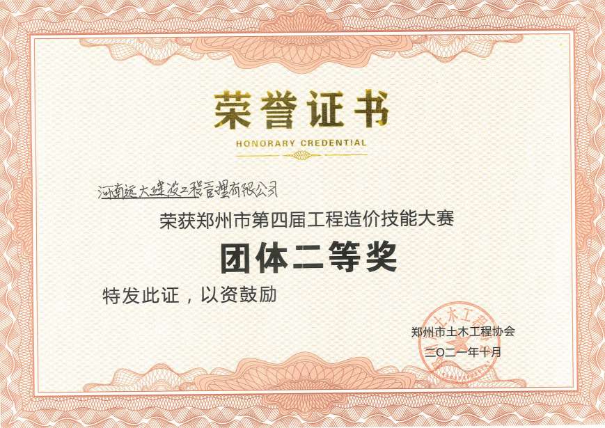 鄭州市第四屆工程造價技能大賽團體二等獎