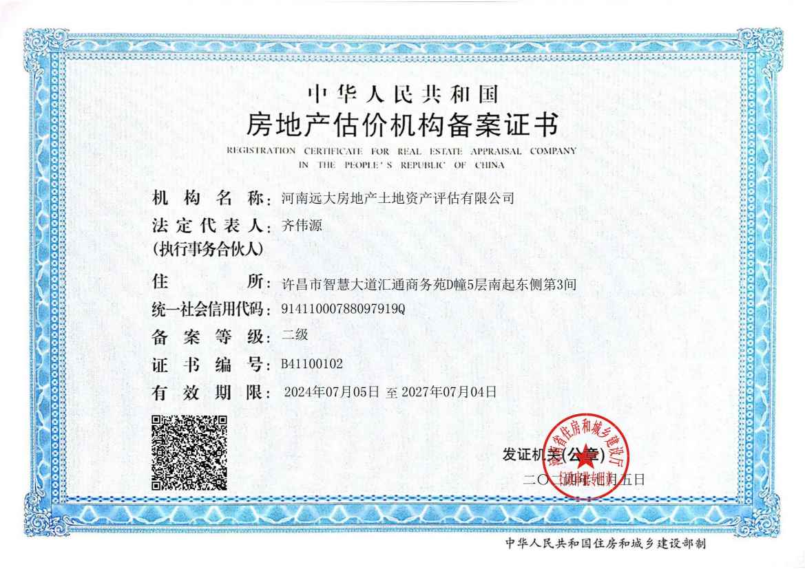 房地產(chǎn)估價機(jī)構(gòu)備案證書